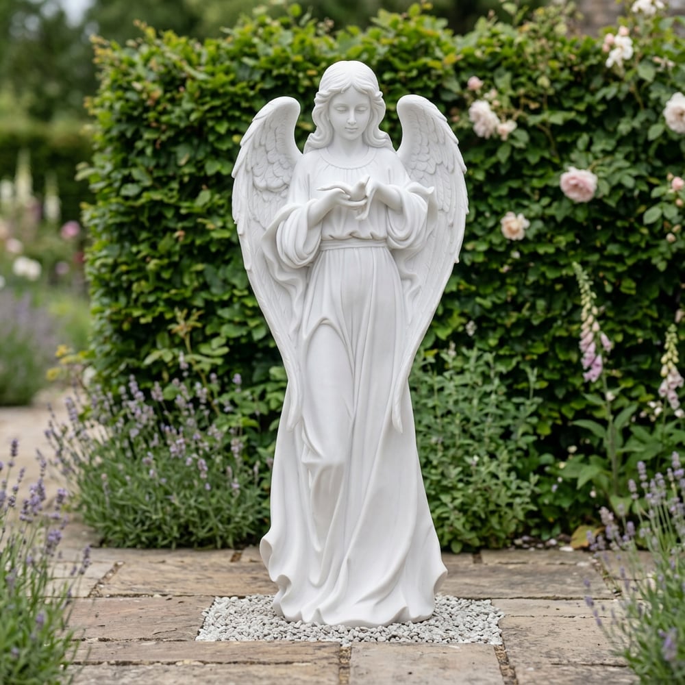 At 73cm tall and 11kg, the Angel of Peace holds its position well in wind. It suits formal gardens, memorial spaces, and quiet corners. Place it among low planting or beside a water feature for the best effect.