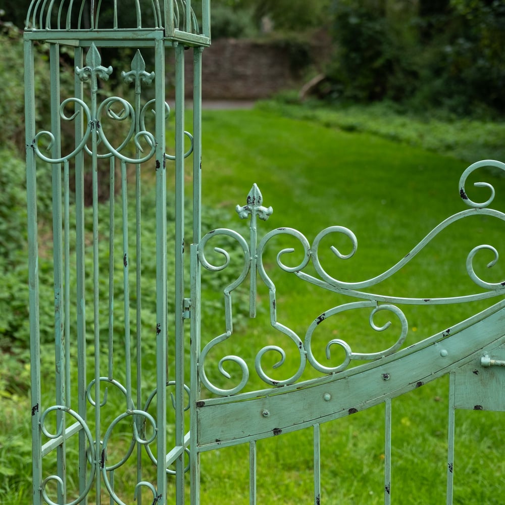 Antiqued Green Vintage Metal Garden Arch with Gates