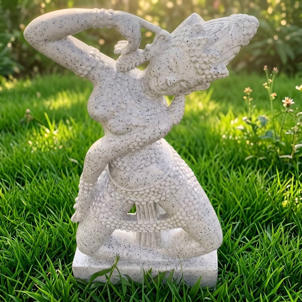 A 63cm hand-finished Apsara dancer statue in frost-resistant crushed marble with granite-speckled detail