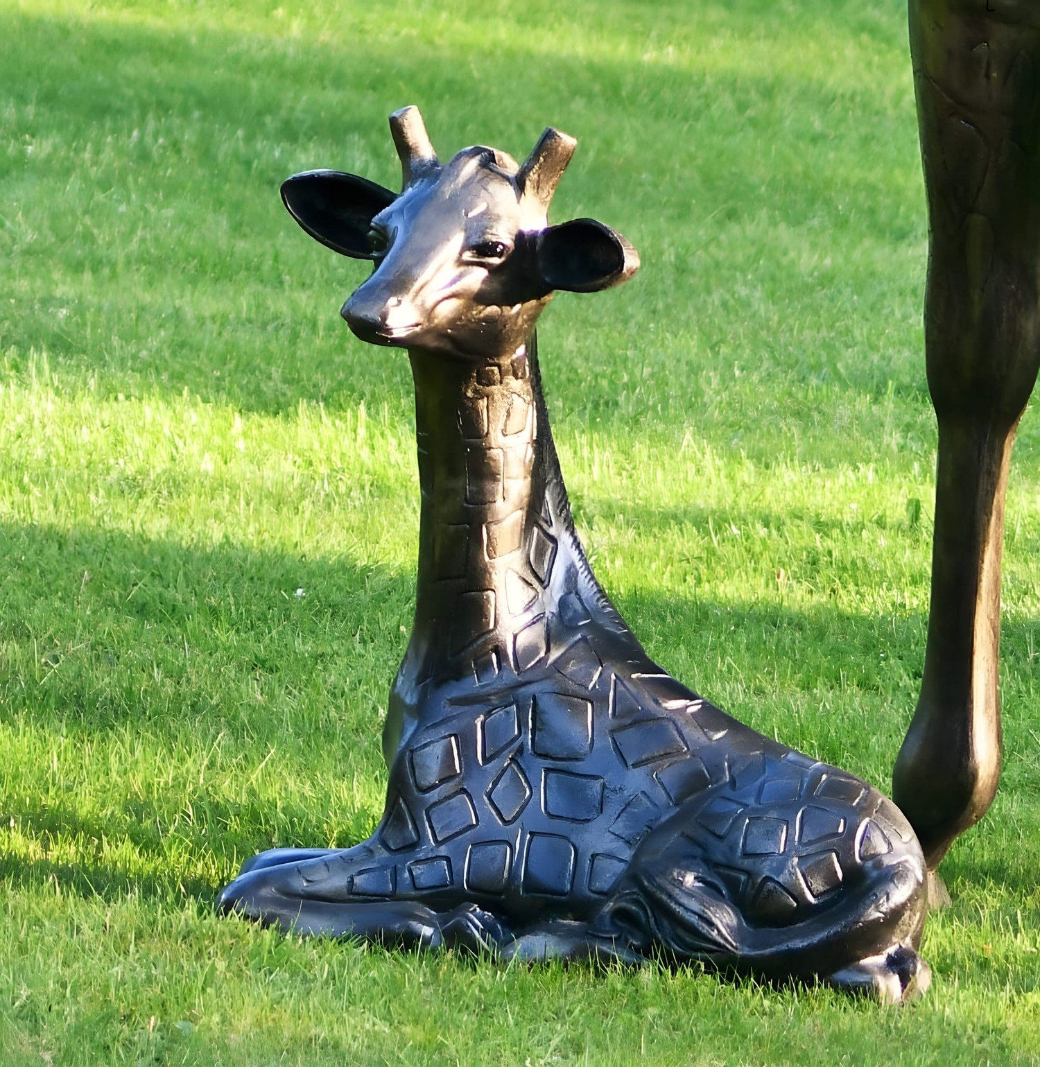 The Baby Giraffe Metal Garden Ornament brings charming safari style to your outdoor space, with its adorable seated pose and beautifully textured detailing.