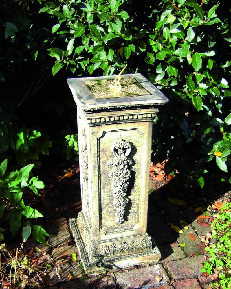 The Brass Sundial on Floral Stone Garden Pedestal stands 810mm tall and makes a striking centrepiece for any garden. At £319, you get a handcrafted cast stone plinth topped with a working brass sundial.
