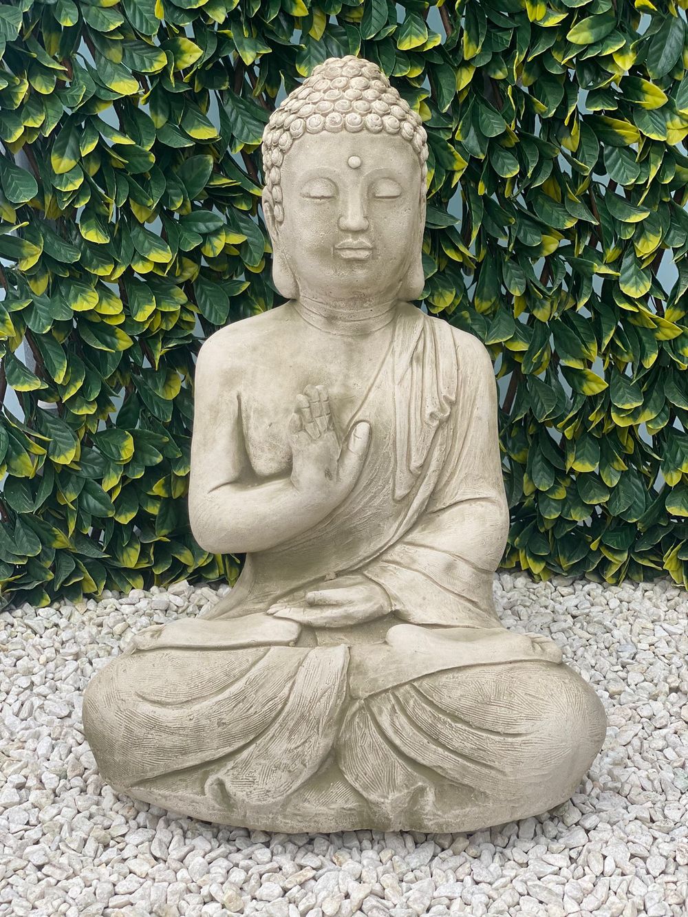 Hand-finished 64cm cast stone Buddha statue with frost-proof construction for year-round garden display
