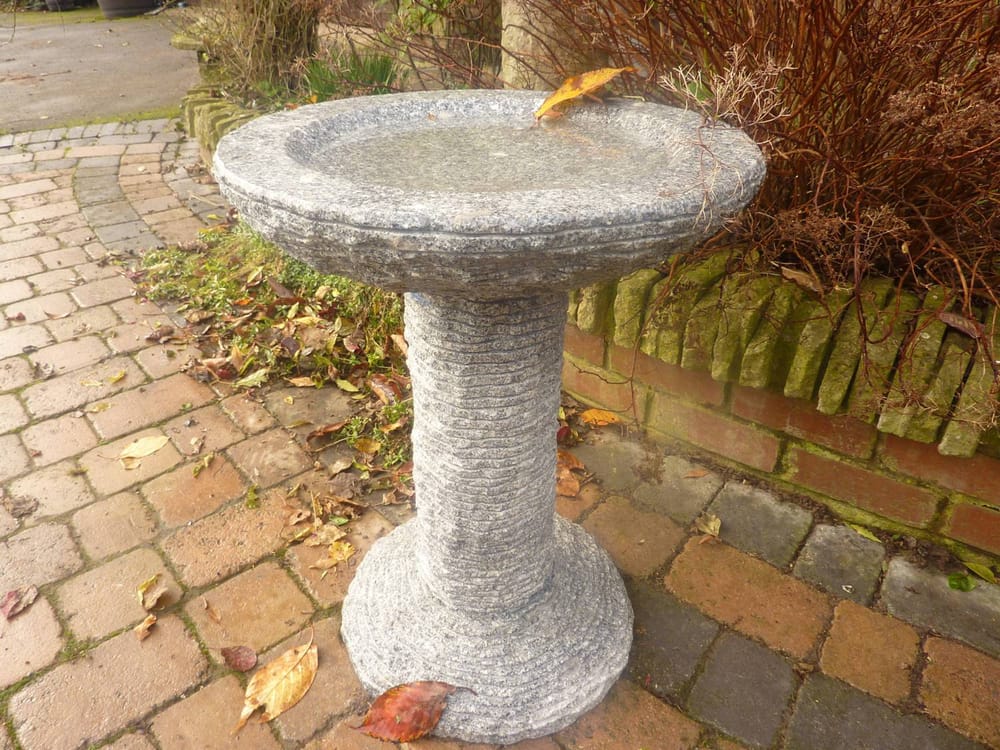 The Cascade Grey Granite Bird Bath features a chisel crafted look and makes an ideal focal point for your garden.