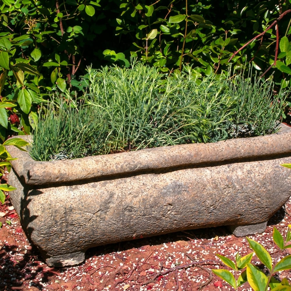 Each trough is handcrafted from reconstituted cast stone. The casting process picks up fine surface detailing inspired by planters found across northeast Spain. At 60kg, it holds its position on any flat surface without fixing or anchoring.