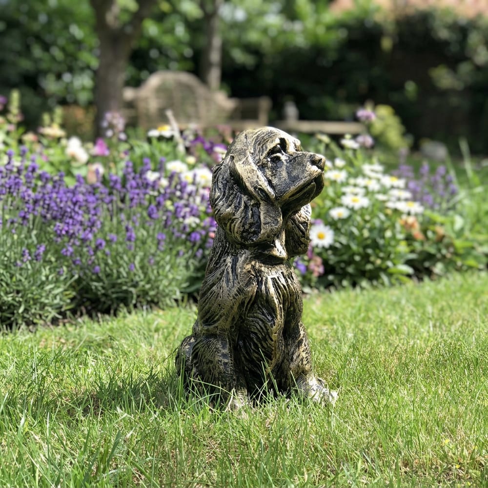 Cast aluminium Cocker Spaniel in a hand-finished aged bronze patina, 350mm tall and built to last outdoors year after year
