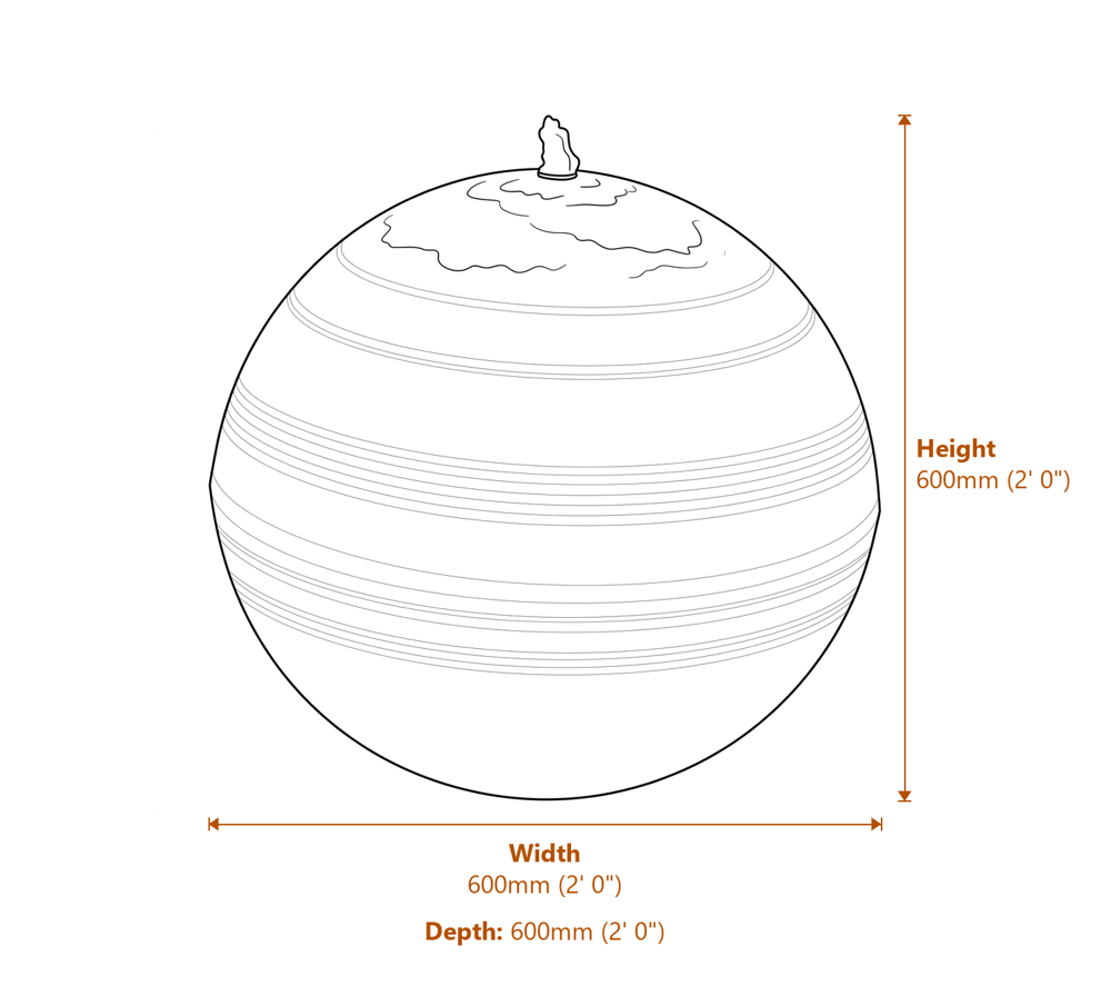 At 600mm across, the sphere works well on a patio, decking area or nestled among border planting. Surround it with pebbles or cobbles to hide the reservoir and create a natural gravel bed effect.