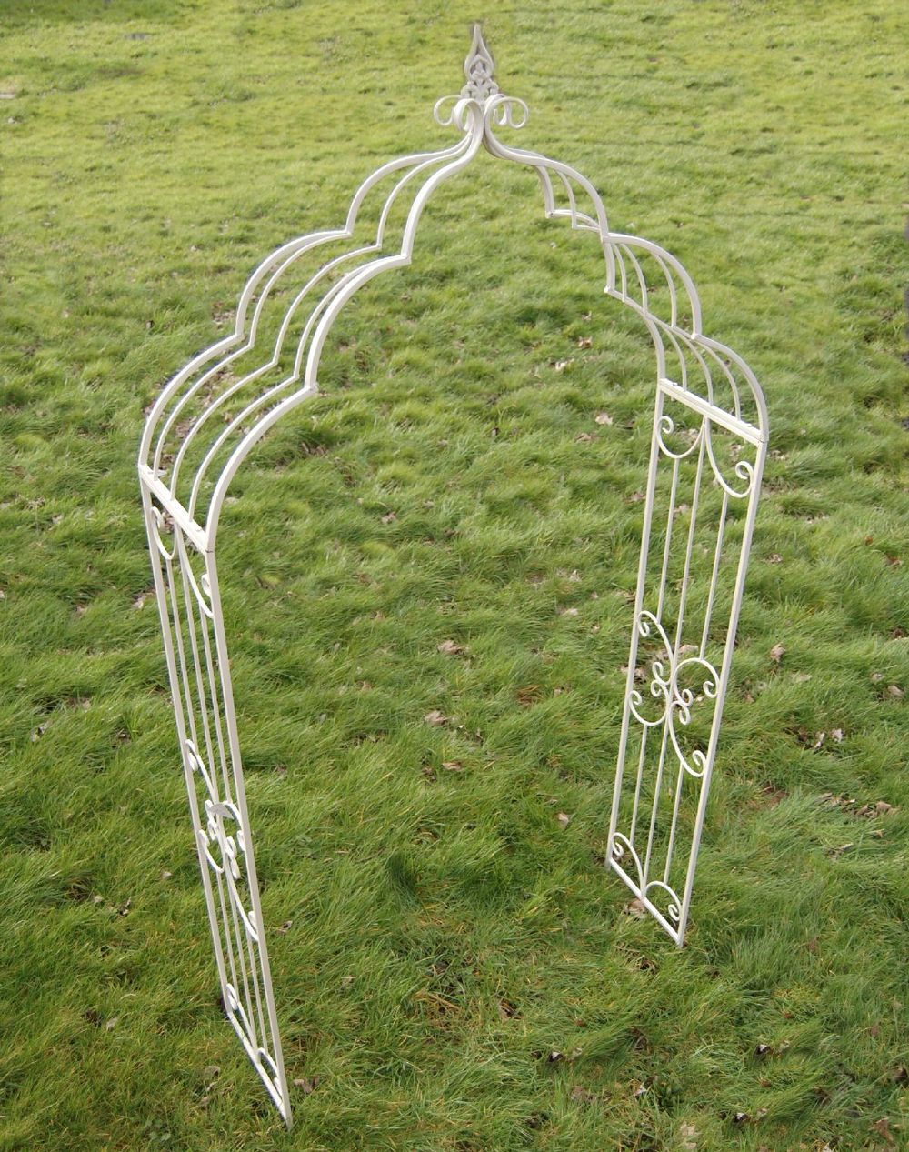 The Cream Vintage Antiqued-Metal Garden Arch features Fleur De Lys detailing to the sides and a domed style top.