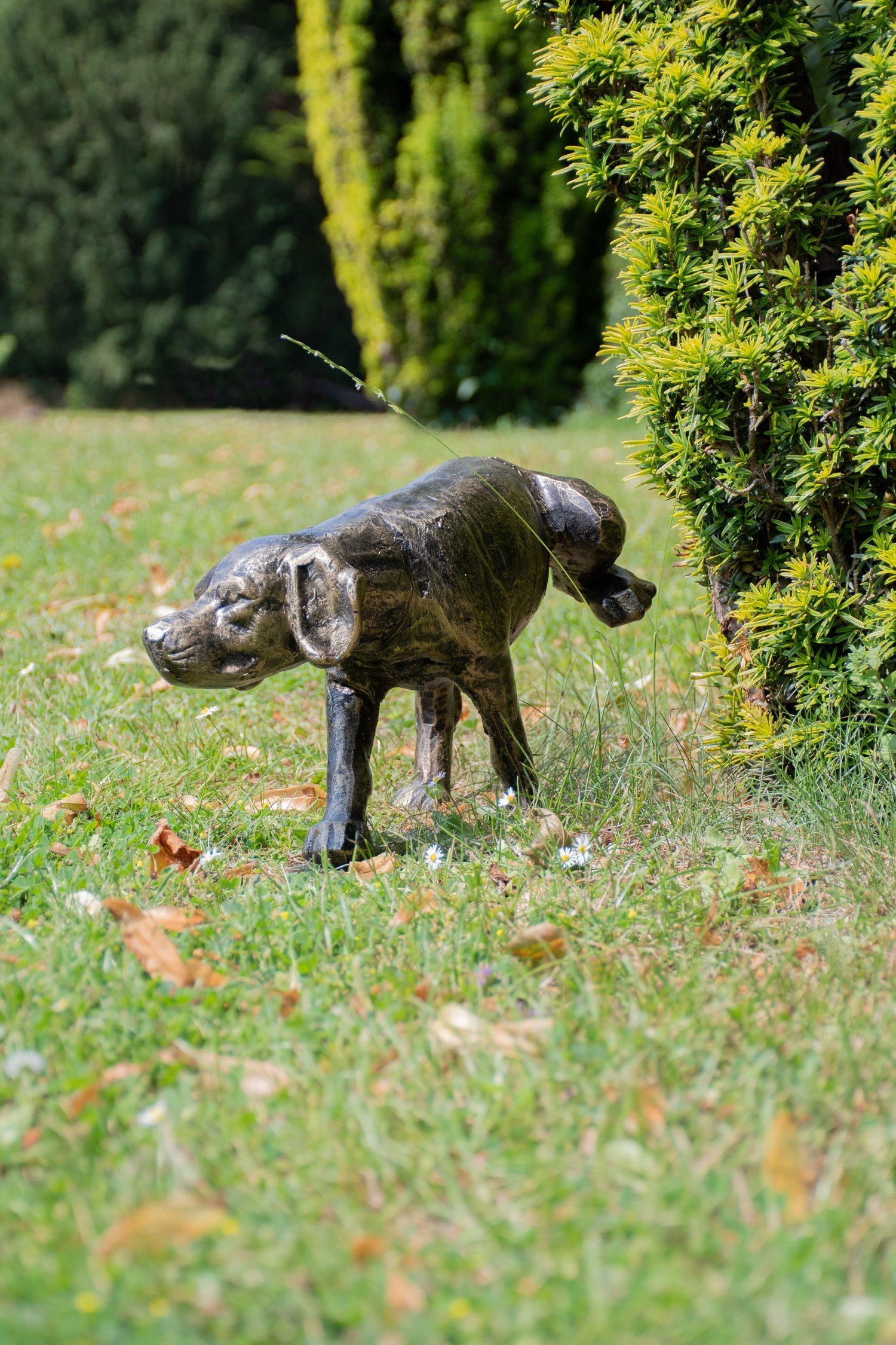 Made from durable aluminium with a stylish black & gold finish, this 24cm, 1.8kg decorative Dog Peeing Metal Garden statue is perfect for lawns, borders, or near bushes as a fun garden feature.