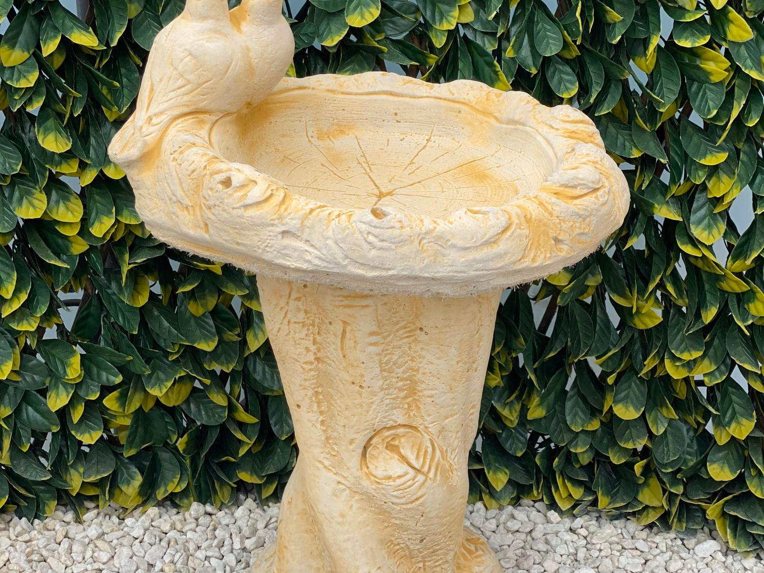 Uniquely styled with two delicately sculpted doves perched side by side, this pedestal birdbath creates a sense of calm and natural beauty within the garden. The shallow bowl provides a safe and welcoming place for birds to drink and bathe, encouraging regular wildlife visits. Carefully hand finished from high-quality cast stone, the birdbath displays crisp detailing and a natural stone appearance that enhances both small and large gardens alike. Durable, frost-resistant, and easy to maintain, the Sand Stone Dove Birdbath offers lasting visual appeal and enjoyment for years to come.
