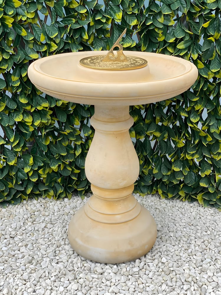 Originally created to tell time through the movement of the sunâs shadow, this elegantly proportioned Edwardian sundial now serves as a graceful and functional decorative element for the modern garden. Its smoothly contoured form and balanced silhouette convey timeless charm, while the integrated bowl provides a shallow water feature that naturally attracts wild birds for drinking and bathing. At the heart of the design sits a solid brass sundial, adding both visual distinction and authentic character. Carefully hand finished from high-quality cast stone, this Edwardian Garden Sundial in Sandstone displays crisp detailing and a premium finish, ensuring long-lasting beauty and enjoyment in gardens of any size.