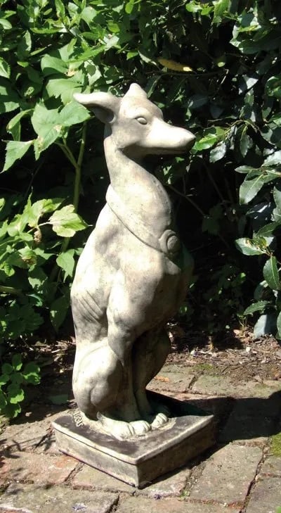 The Egyptian Tomb Dog is a 720mm tall handcrafted stone statue inspired by ancient Egyptian guardian figures. Weighing 27kg, it stands firmly in place on any level surface.