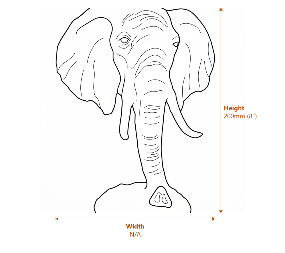 At 200mm tall, this elephant head wall sculpture suits shelves, desks, mantlepieces, and garden walls. The aluminium construction means it will not rust or corrode, even through harsh British winters. Each piece is hand-finished, so no two are exactly alike.