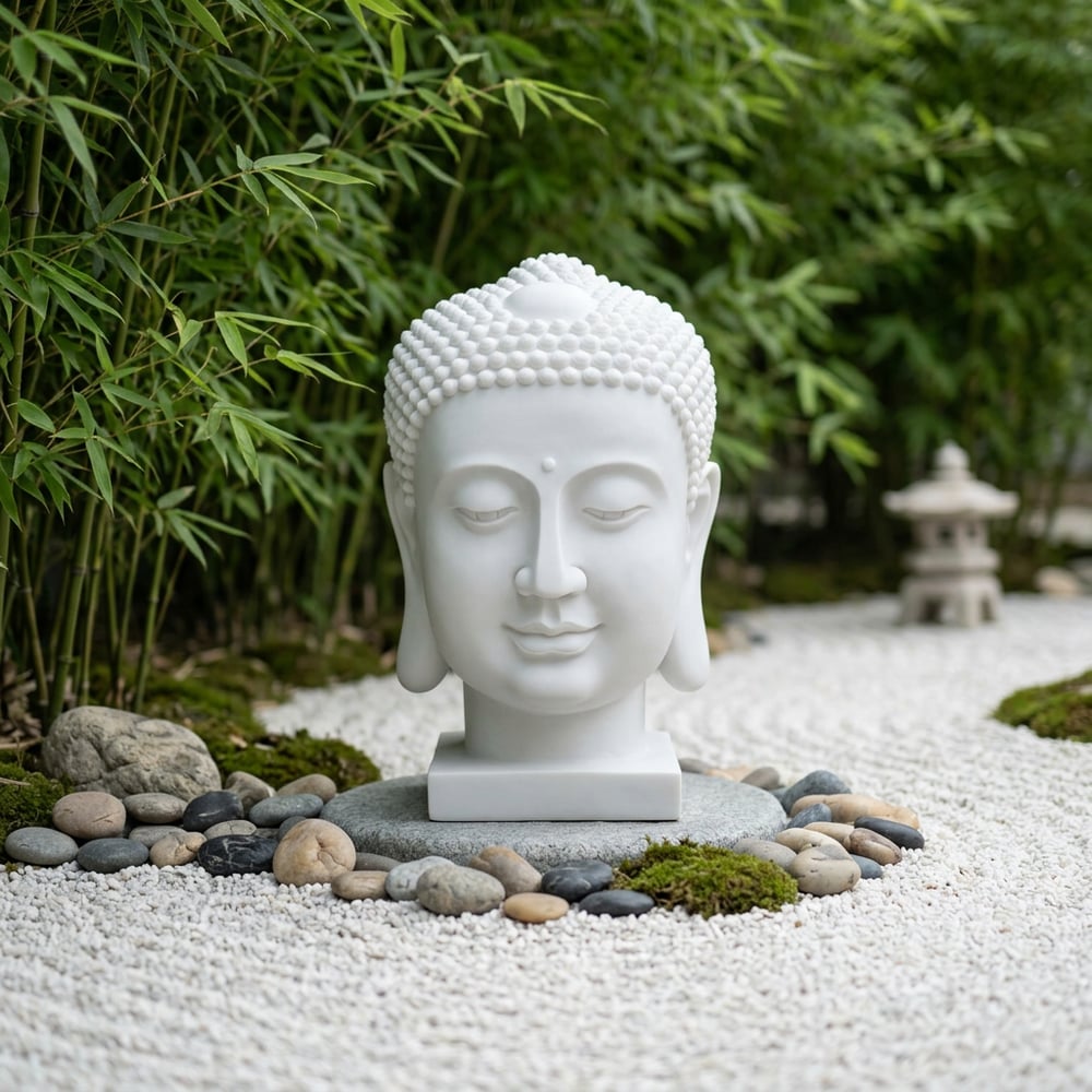 Extra Large 700mm White Buddha Head statue in crushed marble and resin — frost-proof, hand-cast, and built to last