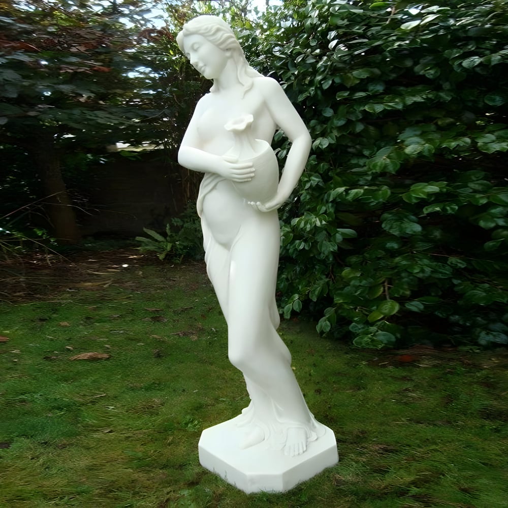 This exquisite sculpture is meticulously produced in Enigma's specialist factory, utilising a premium fusion of crushed marble and resin to achieve a finish that mirrors the smooth, luminous quality of genuine Italian alabaster. Every curve and detail of the Extra Large Grace Goddess Garden Ornament is hand-refined, ensuring a unique piece of superior craftsmanship that serves as a captivating focal point for expansive gardens or grand interior halls. Engineered for longevity, the statue features a robust frost-resistant exterior to preserve its flawless white appearance against harsh weather, while the stable flat base allows for simple installation on any level surface, such as a stone patio or tiled floor.
