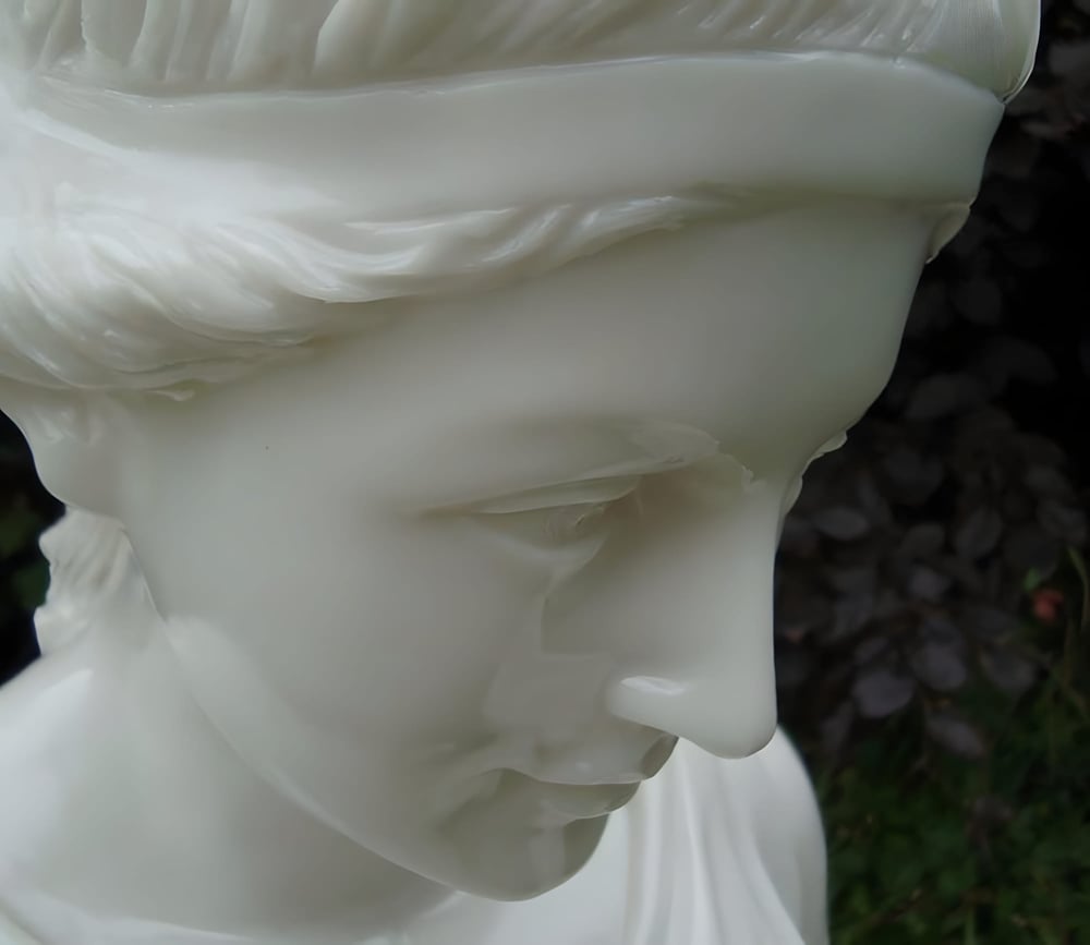 This striking statue is cast from a specialist blend of crushed marble and resin. The result is a smooth, luminous finish that echoes the quality of fine Italian sculpture. Every fold and drape of the goddess's robes is hand-finished by skilled craftspeople in a dedicated workshop.