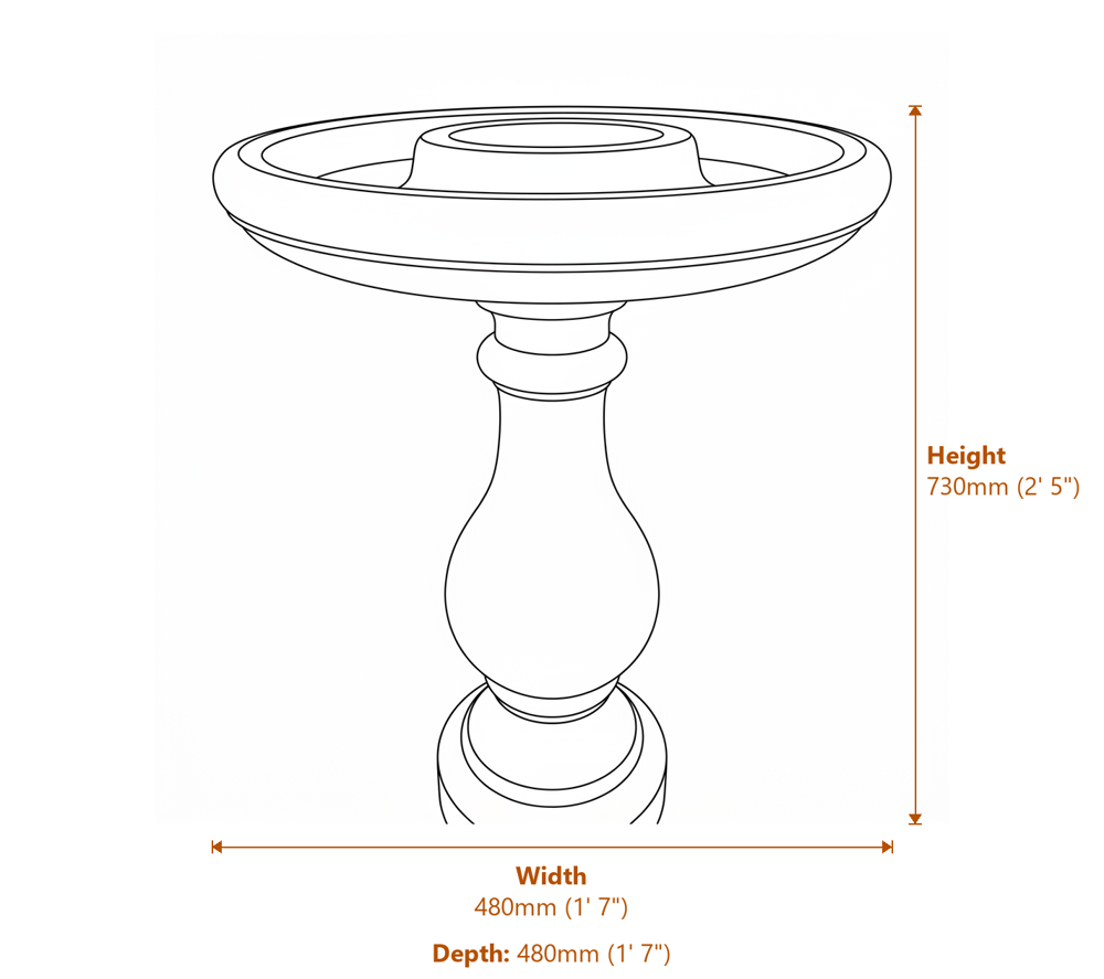 Featuring a perfectly round bowl set atop a smoothly contoured, bulbous pedestal, this classic birdbath offers a graceful silhouette that complements both traditional and contemporary gardens. The shallow basin provides an inviting and practical space for birds to drink and bathe throughout the year. Carefully hand finished from high-quality cast stone, it displays crisp detailing and a beautifully aged appearance. Finished in a Stone wash inspired by natural Cotswold stone, the Stone Fosse Birdbath blends effortlessly into its surroundings and delivers lasting beauty, durability, and enjoyment in gardens of any size.