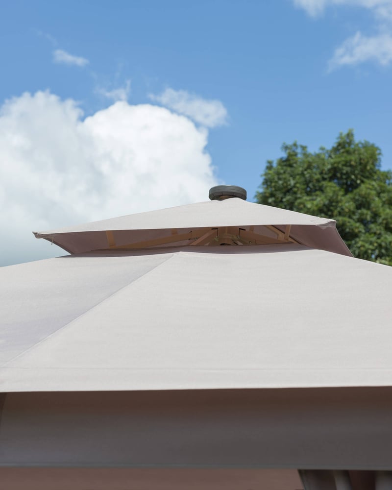 The Garden Must Haves 3m Luxury Gazebo Grey makes a beautiful addition to any garden. The wood look painted aluminium frame and polyester side walls give it a luxurious feel, while the vented roof ensures that you can enjoy your time outdoors even on hot days.