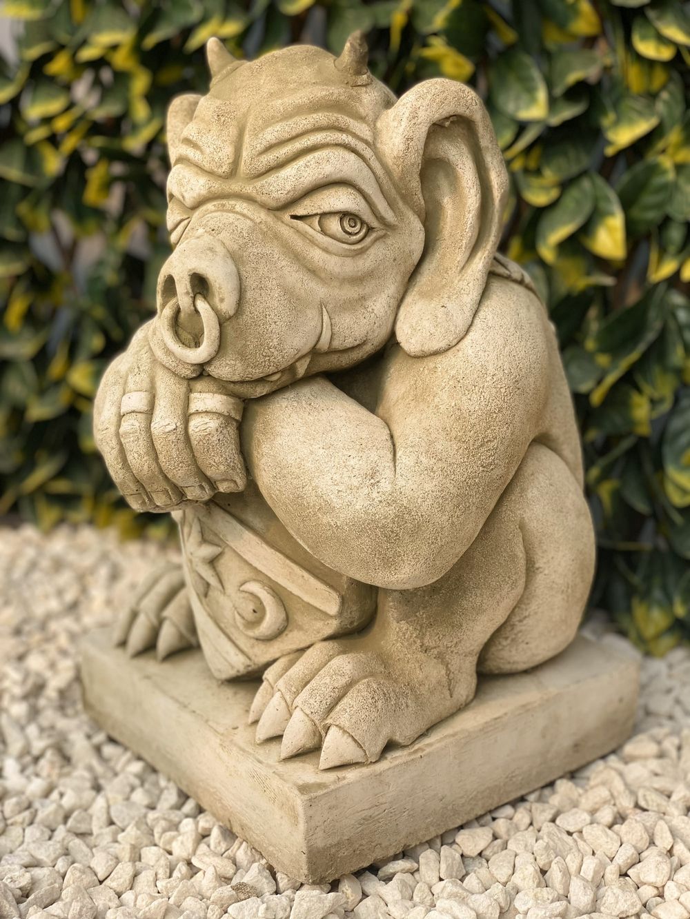 At 300mm wide and 300mm deep, this gargoyle sits well on walls, gateposts, and plinths. Frost-proof construction means it stays outdoors through every British winter without cracking or flaking.
