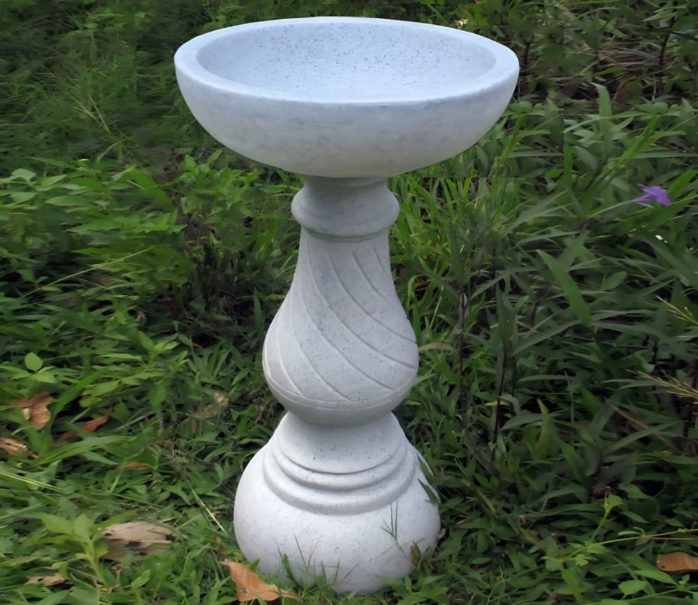 Built from a marble-resin composite, this bird bath handles frost, rain, and UV exposure without cracking. It weighs enough to stay stable in windy conditions. No annual sealing or painting is needed. Simply rinse the basin with fresh water every few days to keep it inviting for wildlife.