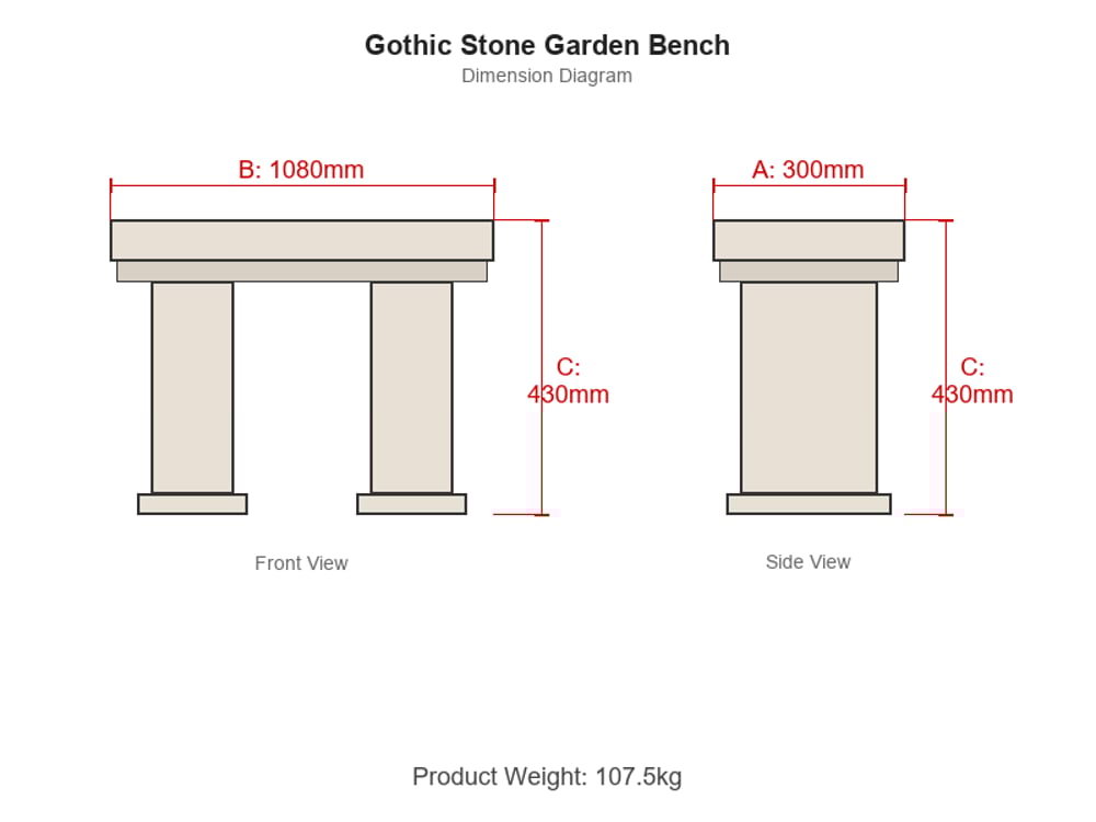 The Gothic Stone Garden Bench brings classical architecture into your garden. At 1080mm wide, it seats two adults and weighs a reassuring 107.5kg.