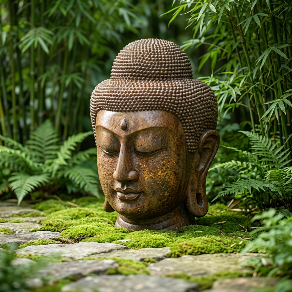Place on a stone plinth beside a water feature or among bamboo planting. The Grand Buddha Head creates a calm focal point in borders, courtyards, and zen-inspired garden areas.