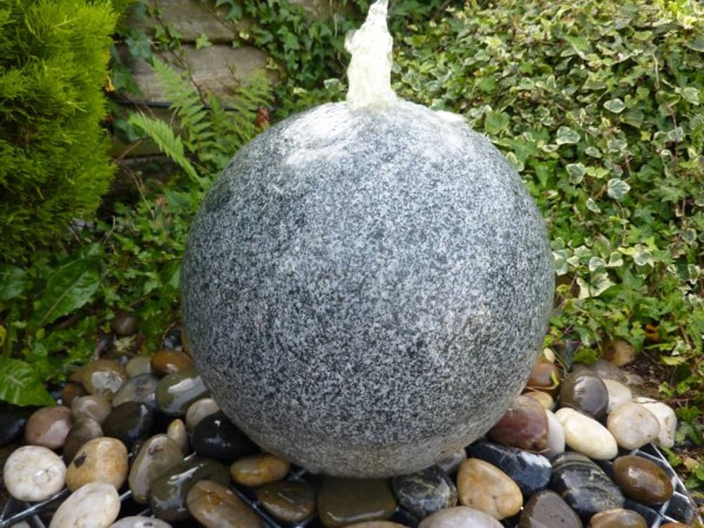The Grey Flame Granite Sphere Water Feature brings a calming focal point to any garden. Hand-finished from natural grey flame granite, this 350mm sphere produces a gentle water flow over its polished surface. It arrives complete with pump and reservoir for quick setup.