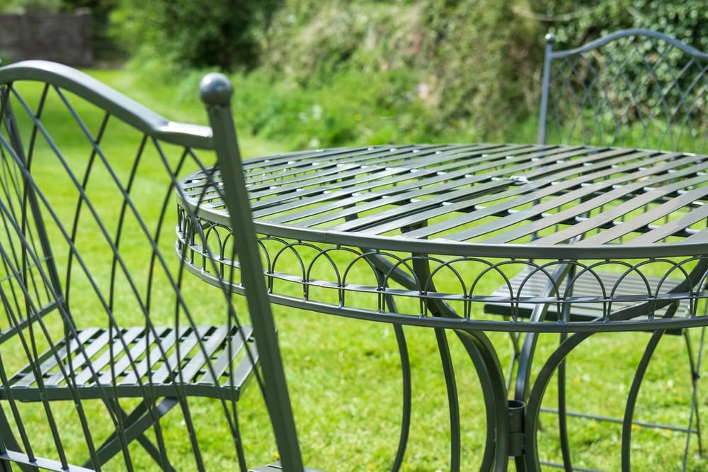 The Hampton Grey Metal Garden Bistro Set combines elegance and functionality. Featuring a 75cm table and two chairs, its classic cream finish and charming arch details make it a timeless addition to any outdoor space.