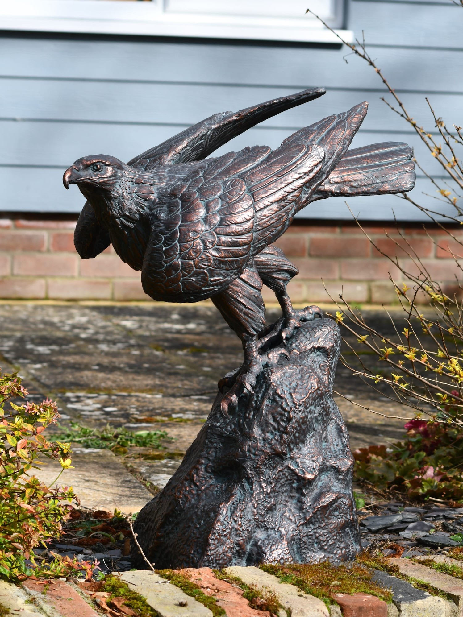 The Hawk on Rock Metal Garden Ornament is a striking and majestic aluminium sculpture designed to elevate your garden.