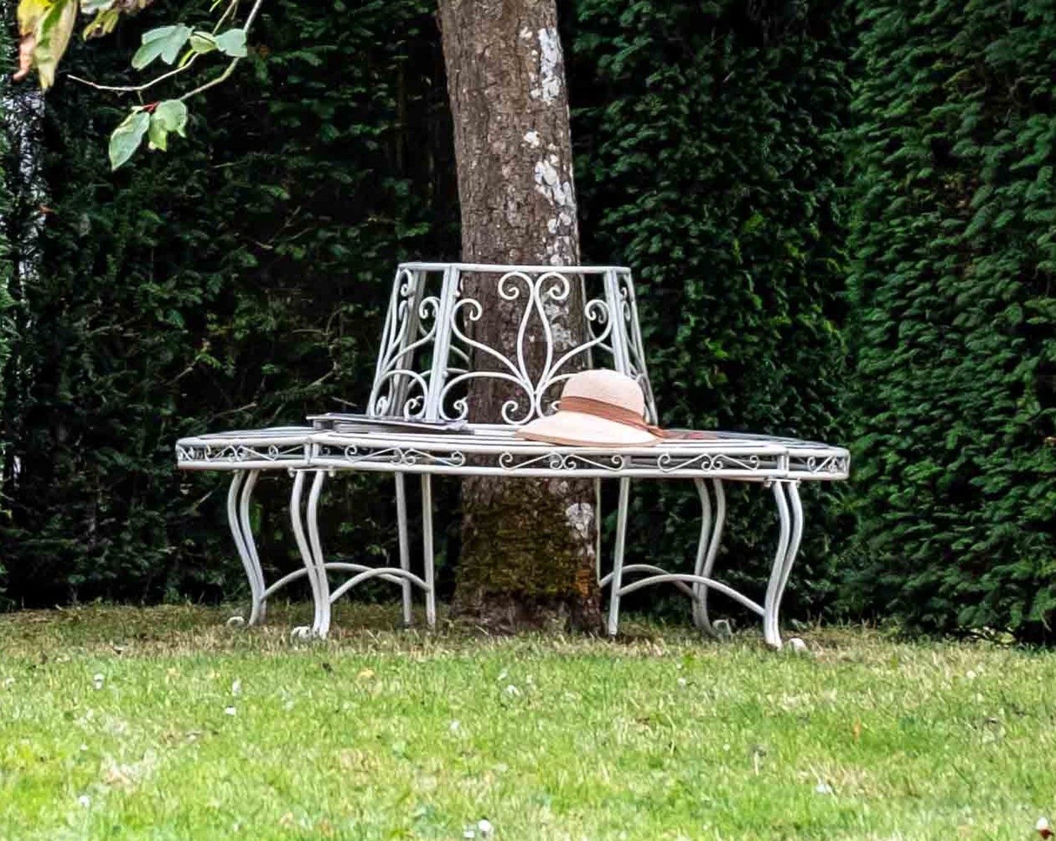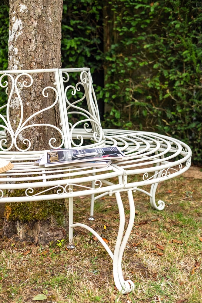 Hawkeshead Cream Metal Tree Bench