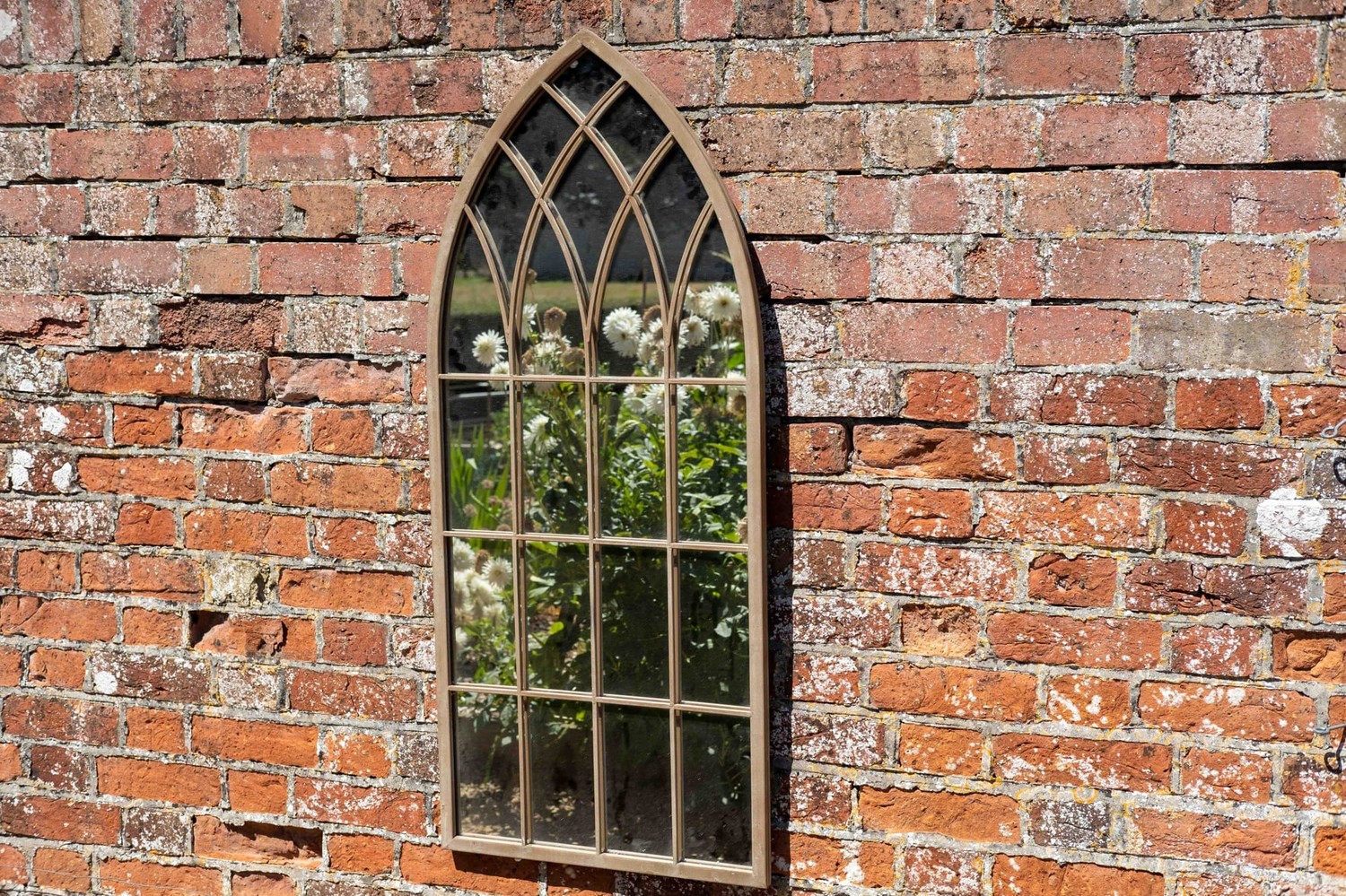 Add a touch of gothic elegance to your garden with the Heraldic Garden Mirror. Featuring sweeping arches reminiscent of historic architecture, this mirror is perfect for creating the illusion of space and depth in your outdoor setting.