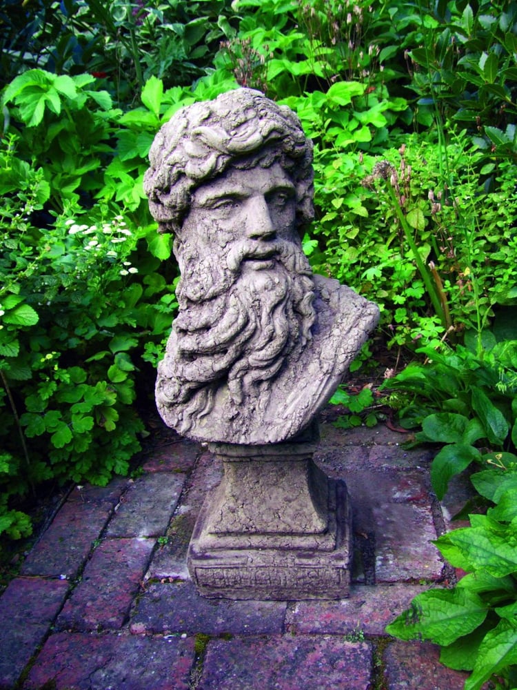 Each bust is individually handcrafted using a cast stone process. The manufacturing technique captures fine detail in the hair, beard, and facial features that mass-produced resin statues cannot match. The stone surface arrives with a naturally aged appearance and encourages moss and lichen growth over time.