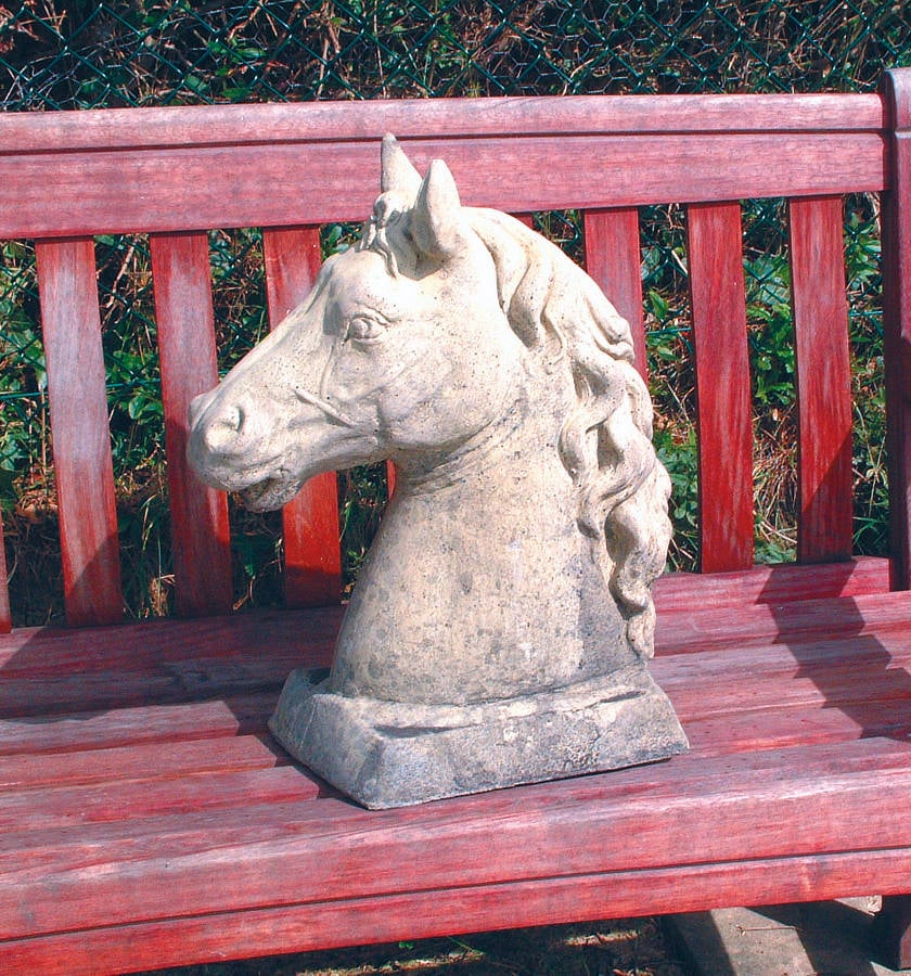 The Horses Head Stone Statue is a handcrafted cast stone bust standing 500mm tall. It suits gatepost tops, entrance pillars, or garden borders where you want a classical focal point.