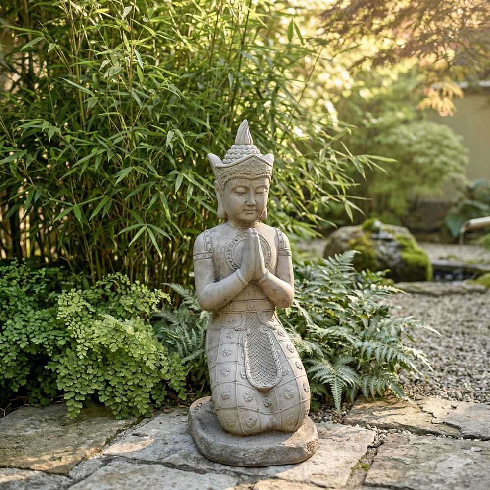 Many customers buy two and place them either side of a garden path, doorway, or water feature. The kneeling pose and prayer gesture create a calm, balanced focal point.