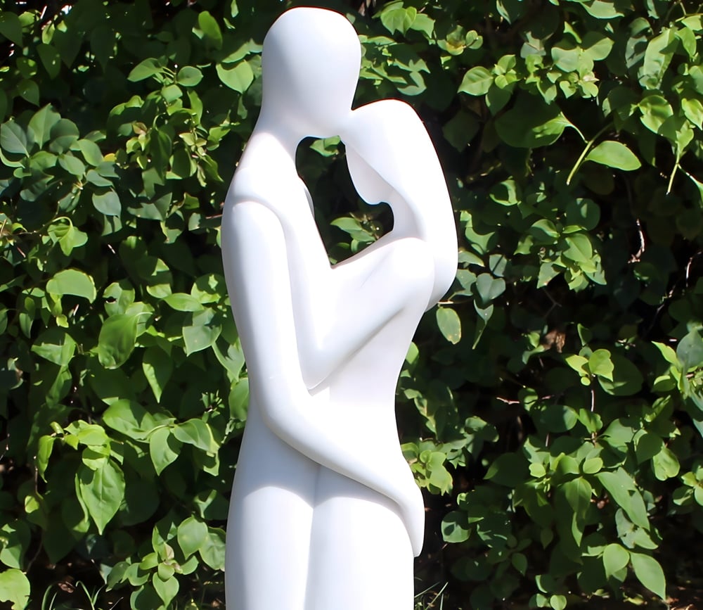 118cm handmade marble and resin garden statue depicting two abstract figures in a flowing embrace