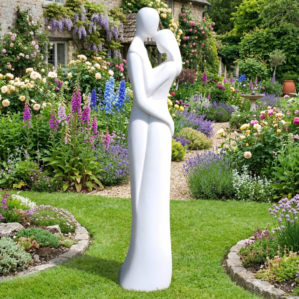 The Large Affection Garden Statue stands 118cm tall. It depicts two abstract figures in a flowing embrace. Priced at £279, it brings modern sculptural style to any garden.
