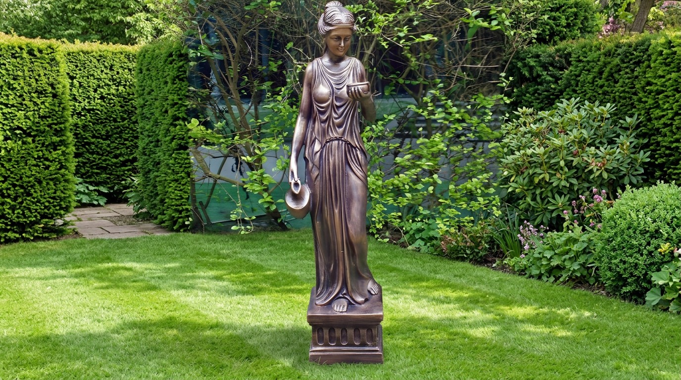 Unlike traditional concrete statues, this Hebe figure is cast from a specialist blend of crushed marble and bonding resin. The result is a lighter piece with a luminous, smooth-to-the-touch bronze alabaster finish. Every fold in the goddess's flowing robes is hand-finished in Enigma's dedicated workshop. The detail rivals gallery-quality sculpture at a fraction of the cost.
