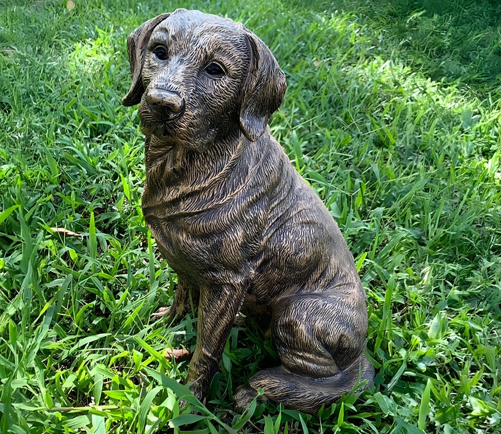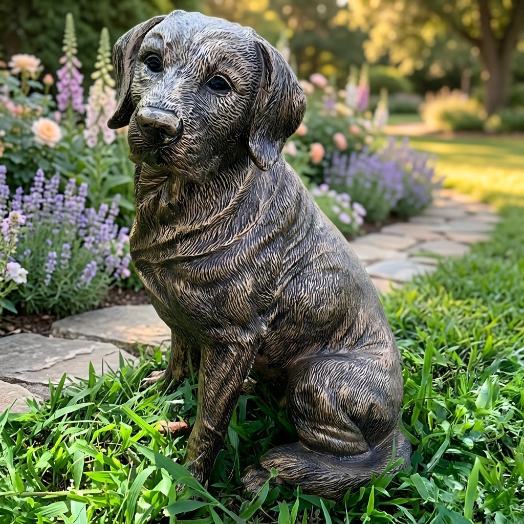 51cm hand-finished bronze Labrador garden statue, cast from crushed marble and resin with frost-resistant outdoor durability