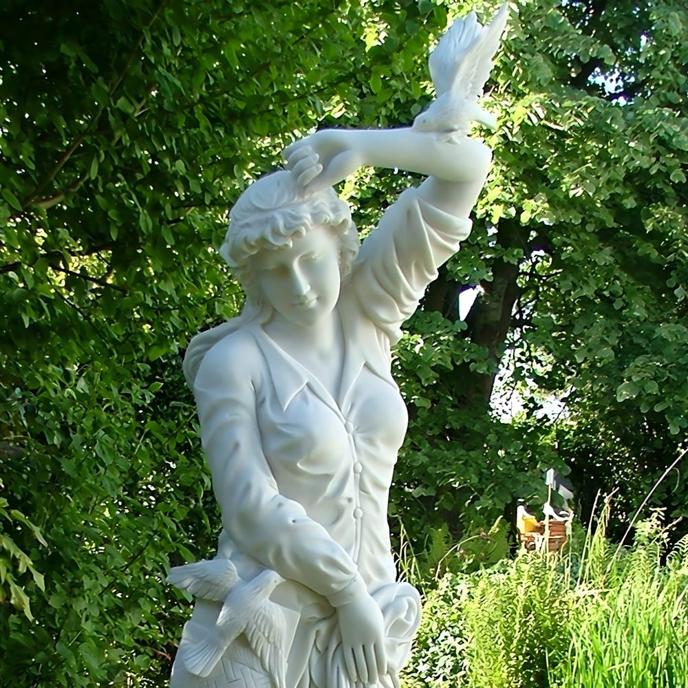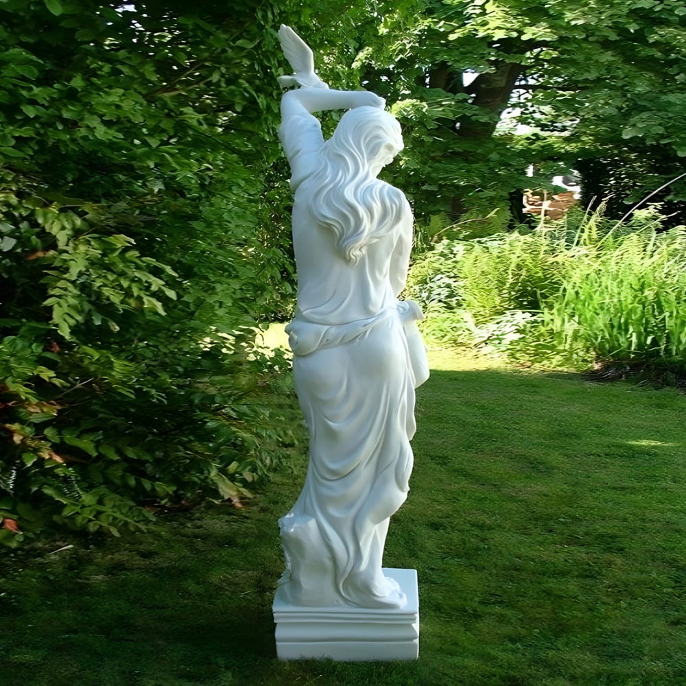 Crafted from a high-performance blend of crushed marble and resin, this statue features a luminous, silk-smooth surface that captures the luxurious look of authentic Italian alabaster. The Large Melanie Garden Ornament is depicted with a bird perched upon her raised handâa detail hand-refined by skilled artisans to ensure a unique, gallery-quality finish. Engineered for permanent outdoor display, its frost-resistant construction preserves the pristine white detail against winter weather, while the stable square base provides a secure foundation for placement on patios, garden walls, or indoor pedestals. This statue offers a durable, high-end solution for those looking to create a tranquil, conversation-starting focal point in their home.