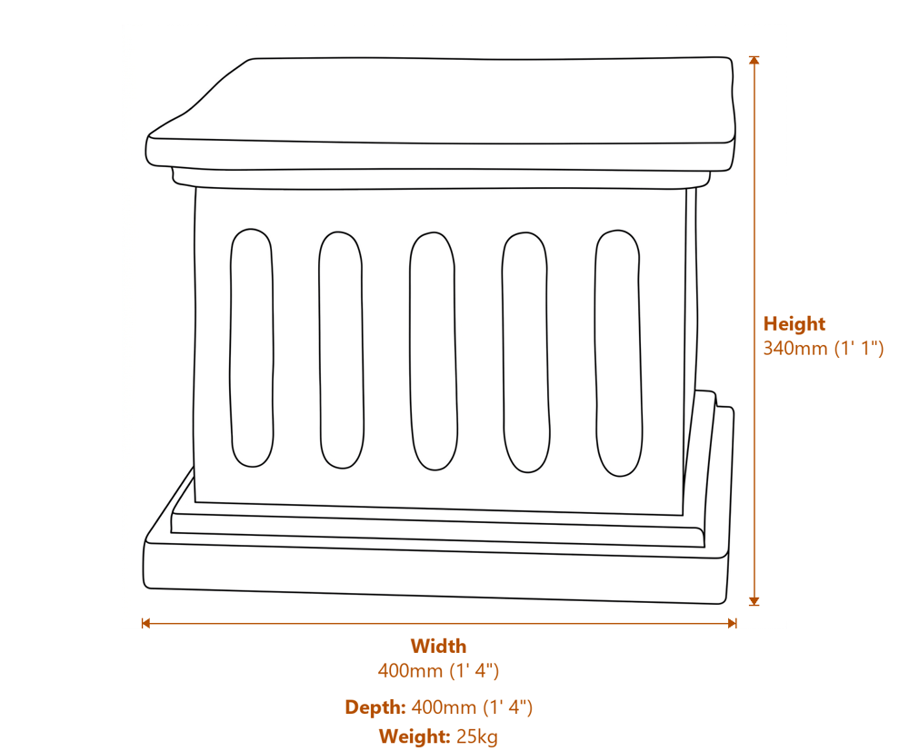 - 34cm High Square Stone Garden Plinth.