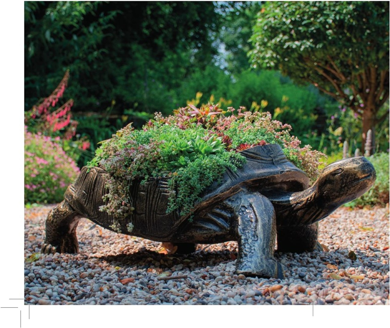 At 24cm tall, the Large Tortoise Metal Garden Planter is a delightful garden ornament that doubles as a unique planter for flowers and greenery.