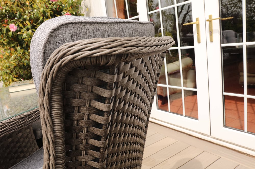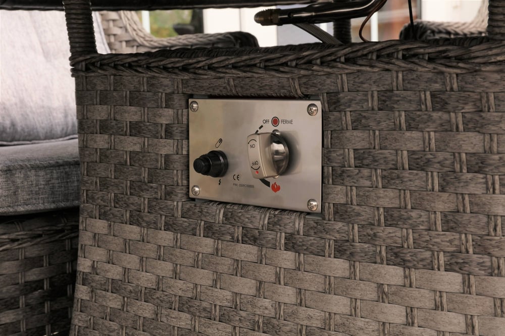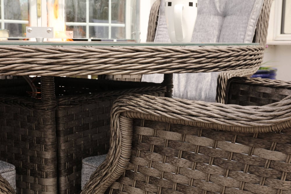 The 4 Seat Lichfield Campania Rattan Garden Dining Set with Gas Fire Pit comes in a dark grey weave, which is comfortable, durable and easily maintained. The table comse with a tough 5mm tempered glass tabletop and central Gas Fire Pit. The whole Campania range comes with a 5 year UV guarantee.