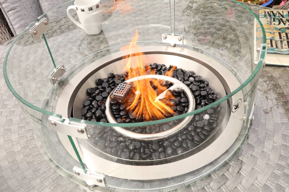 - 5mm Toughened Glass Table Top with Gas Fire Pit.