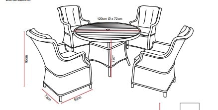 - Fire Pit Table Size: 120cm Diamater x 72cm H