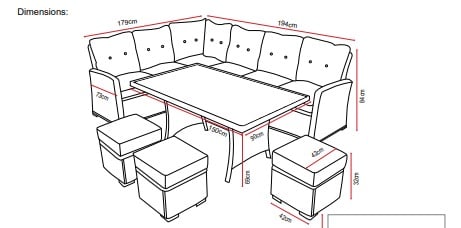 - Sofa 2 Size: 194cm L x 73cm D x 84cm H