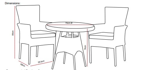 - Bistro Table Size: 70cm W x 74cm H
