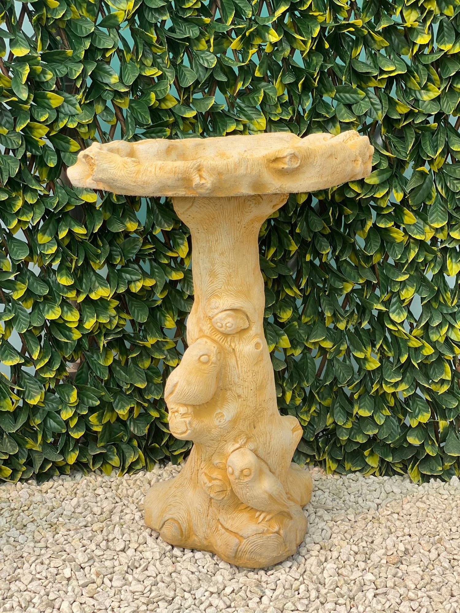 Beautifully sculpted with two small owl faces integrated into the pedestal, this distinctive birdbath brings personality and natural charm to the garden. The bowl continues the woodland theme with textured detailing and a shallow profile, providing a safe and inviting place for birds to drink and bathe throughout the year. Carefully hand finished from high-quality cast stone, the Sandstone Little Owl Birdbath displays crisp detail and a refined surface that enhances its rustic appeal. Finished in the Sandstone coating, with gentle yellow undertones to blend naturally into planted surroundings, this durable and frost-proof birdbath creates a delightful focal point in gardens of any size.