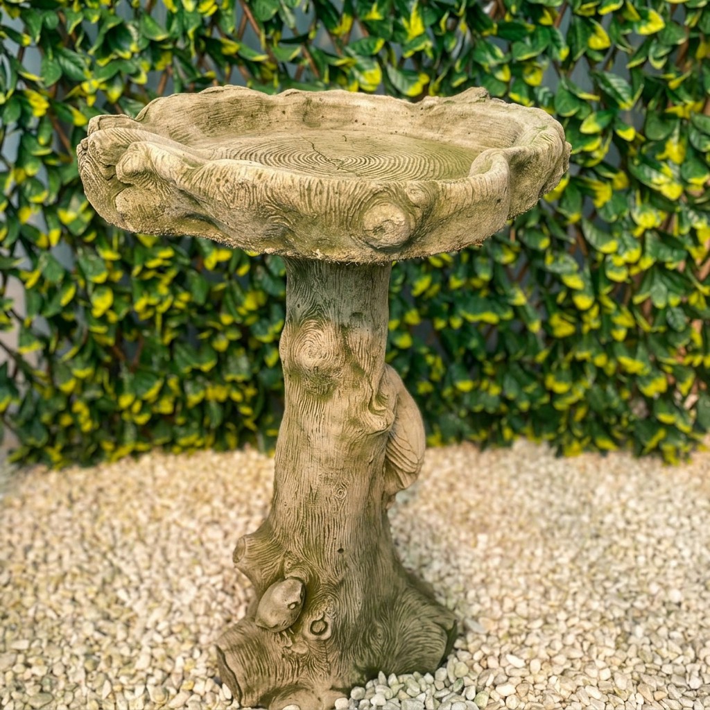 - Handcrafted cast stone bird bath — 670mm tall