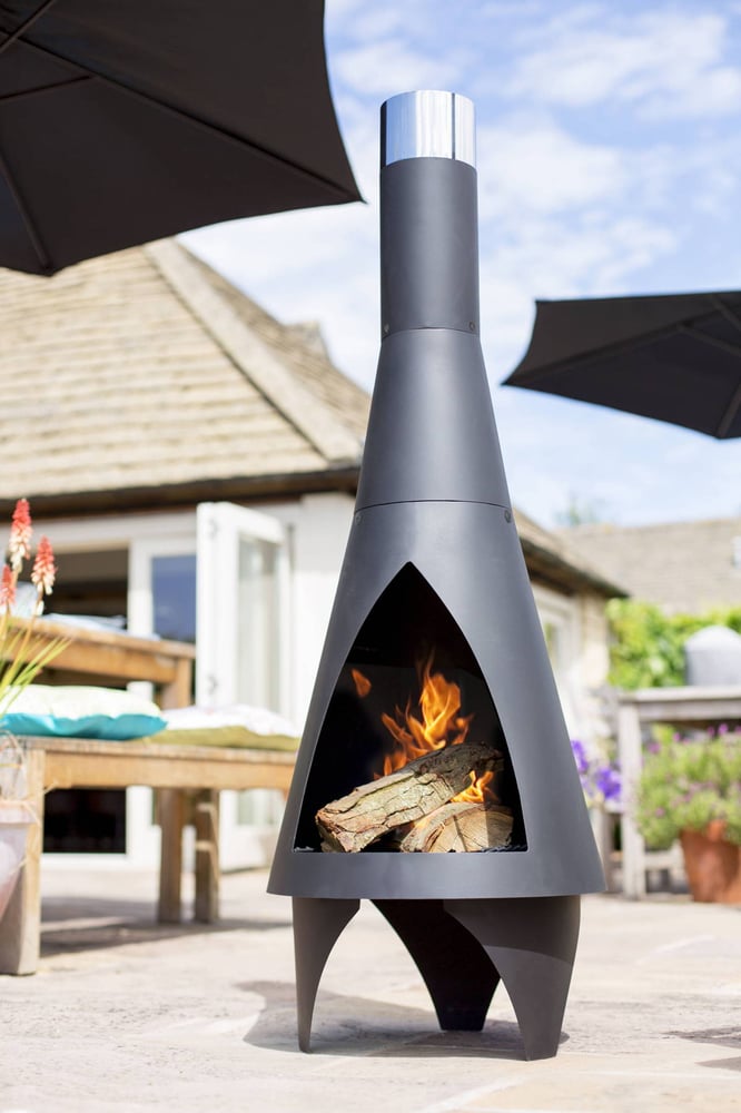 The Medium Colorado Steel Chimenea has a sleek black finish with contrasting Stainless Steel flue band and makes a stylish way to keep your garden guests warm. Includes log grate and safety tool.