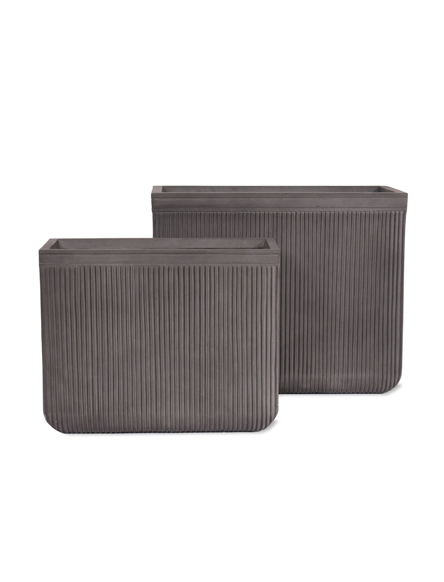 The Set of Two Clay Midford Rectangular Garden Vase is made from off black hard wearing Fibre Clay which will withstand extremes of temperature.