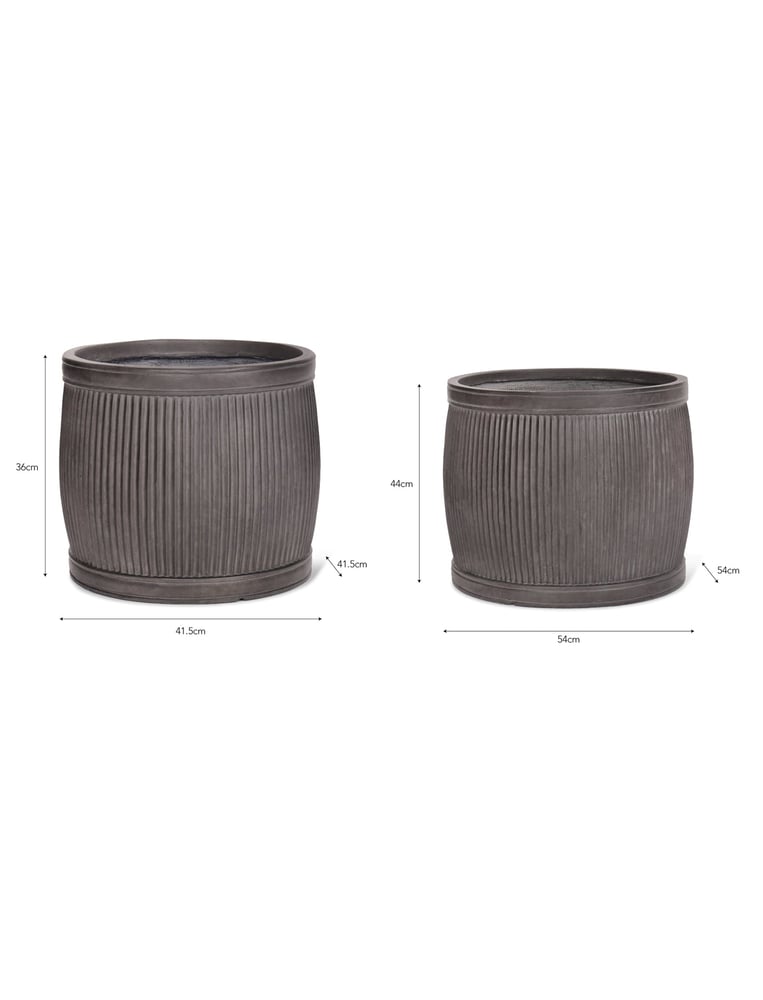 The Set of Two Clay Midford Round Garden Vase is made from off black hard wearing Fibre Clay which will withstand extremes of temperature.